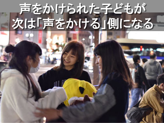 従来の「保護」や「隔離」といった管理的な支援とは異なるアプローチが必要だと感じ、2012年から、着ぐるみを着て街に出向き、子どもたちとの対話を重ねる活動を始めました。この活動は、子どもたちに「安心できる居場所」を提供するとともに、地域の人々との交流を深めるきっかけにもなっています。